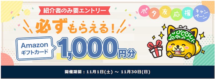 Amazonギフト券が「確定で1000円分もらえるキャンペーン」になります。